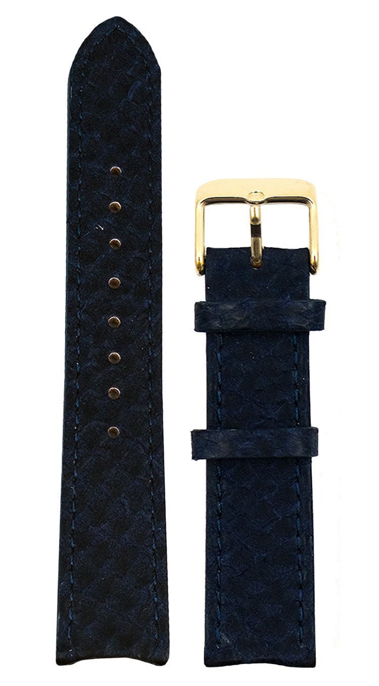 Blå Lakseskinn Reim Gull 16 MM