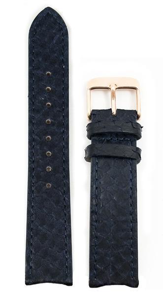 Blå Lakseskinn Reim Rosé Gull 16 MM