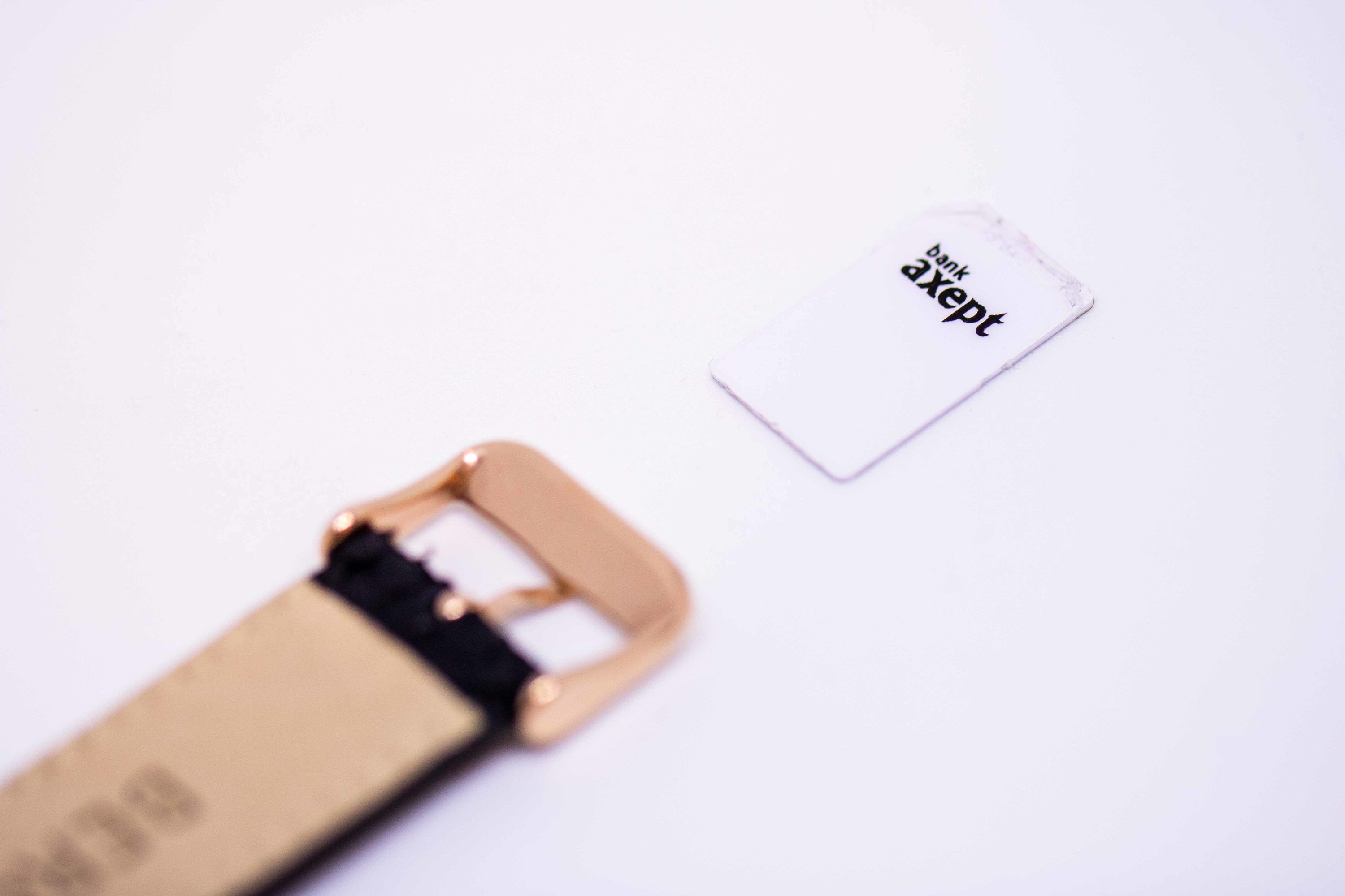 Våre berømte lakseskinn reimer kommer med lomme for mikrobankkort. Kortet må bestilles fra din bank om de tilbyr slike kort. Dette er en enkel løsning som krever ingen telefon eller app for å aktiveres.